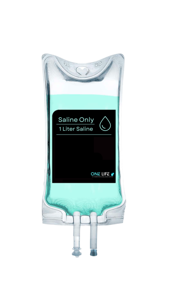 Not interested in the vitamins and just need some hydration? This is a perfect option. One Full Liter of IV fluid.